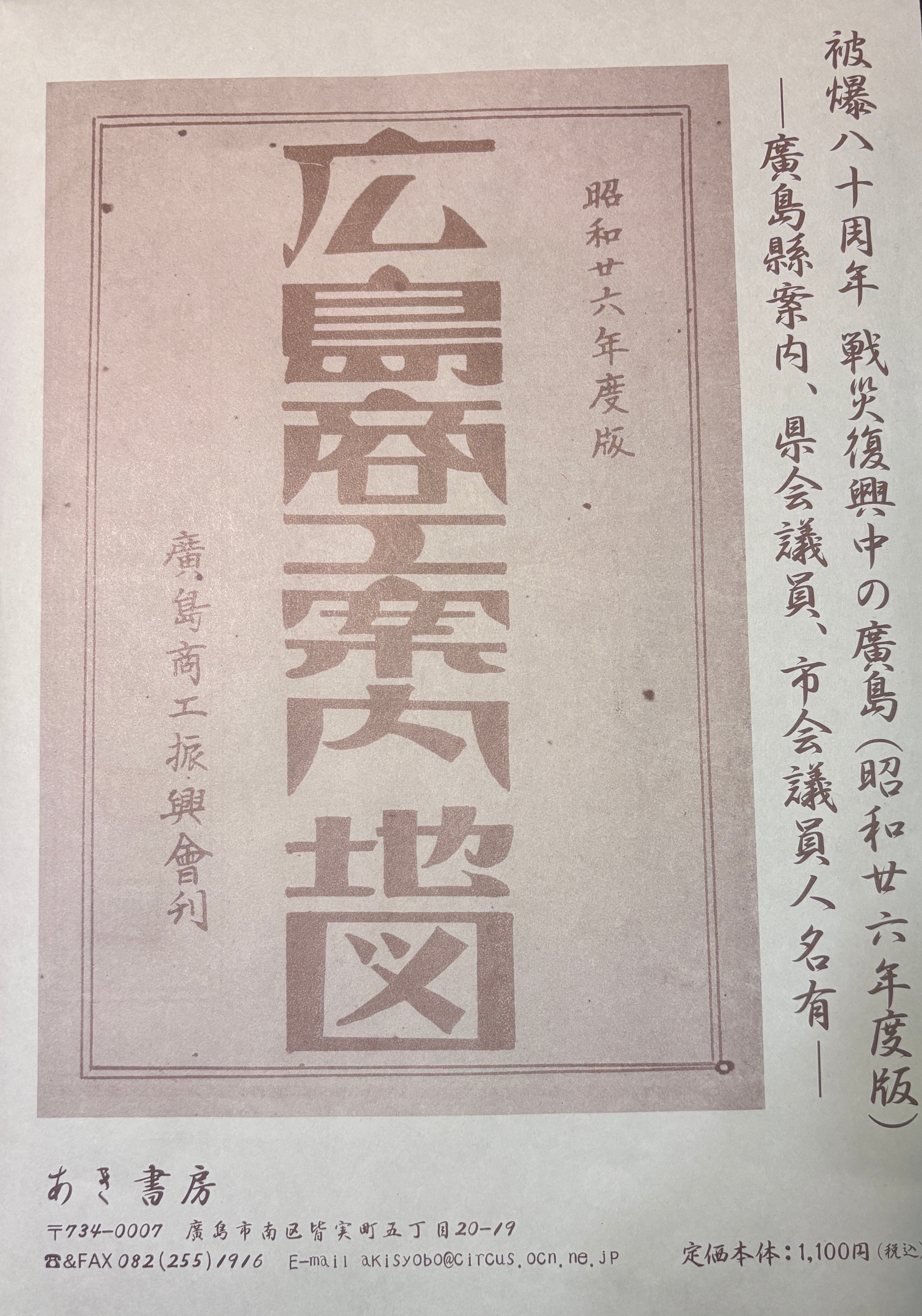 戦災復興中の廣島 昭和二十六年度版(廣島縣案内、県議会議員、市議会員人名有) | あき書房